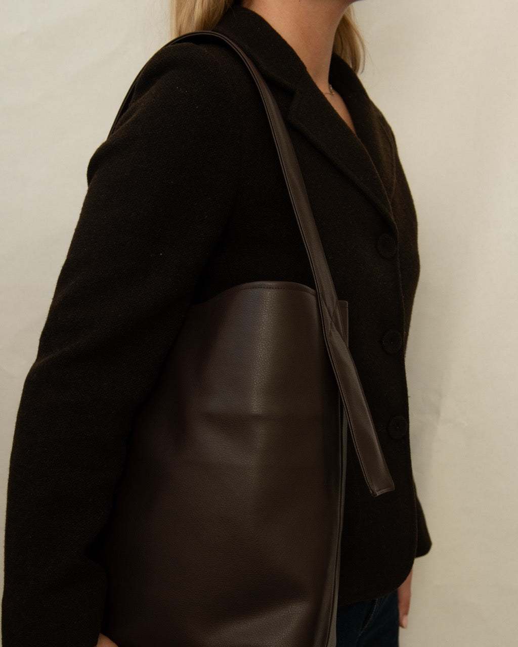Jeg har designet denne skuldertaske som en enkel og rummelig hverdagstaske, der passer perfekt til en computer og de ting, man helst vil have med sig. Formen er slank, så tasken ligger tæt ind til kroppen og bevarer et rent, elegant udtryk. Den bløde struktur og enkle rem gør den behagelig at bære – både til arbejde, studie eller på farten. En tidløs taske til dig, der foretrækker funktion i et roligt og afbalanceret design.